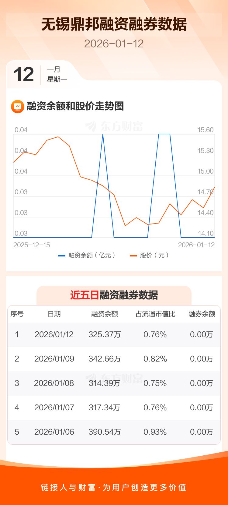 无锡鼎邦:融资净偿还17.28万元,融资余额325.37万元