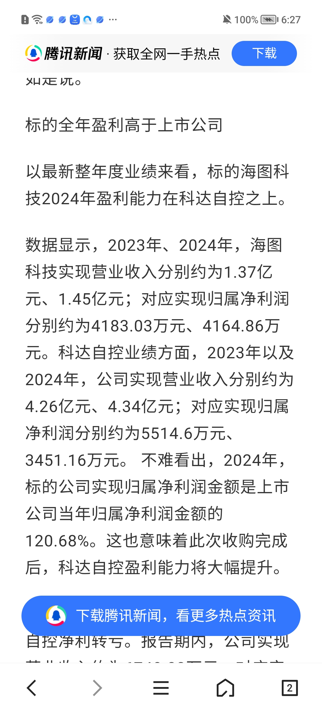 看点,其一海图进入转板上市辅导期已经两年多,上市或已不远,交易价格每股只有4元出头,一旦上市……。其二,业务涵盖航天军工。其三,被收购方海图承诺2025~2027年利润,其中2025年不低于3800万元,赶在2025年最后一天公布过户就是为了合并财务报表,可以预期科达自控2025年业绩将大幅提升。