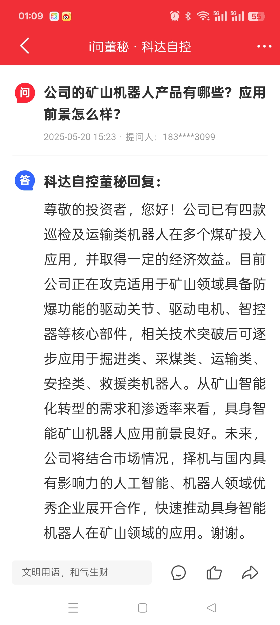 研发投入5000万每年,就等矿山机器人放量了