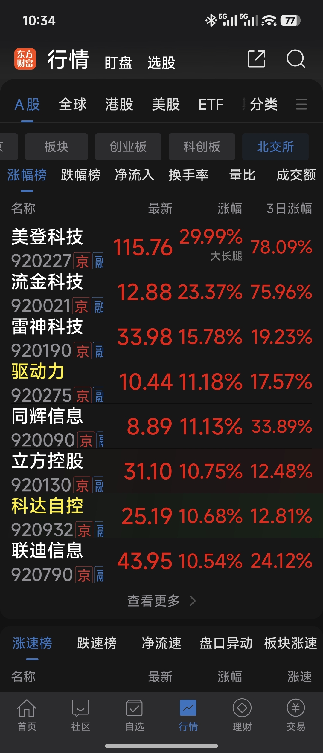 刚才北证股涨幅排第二,怎么了一下就排后面了??