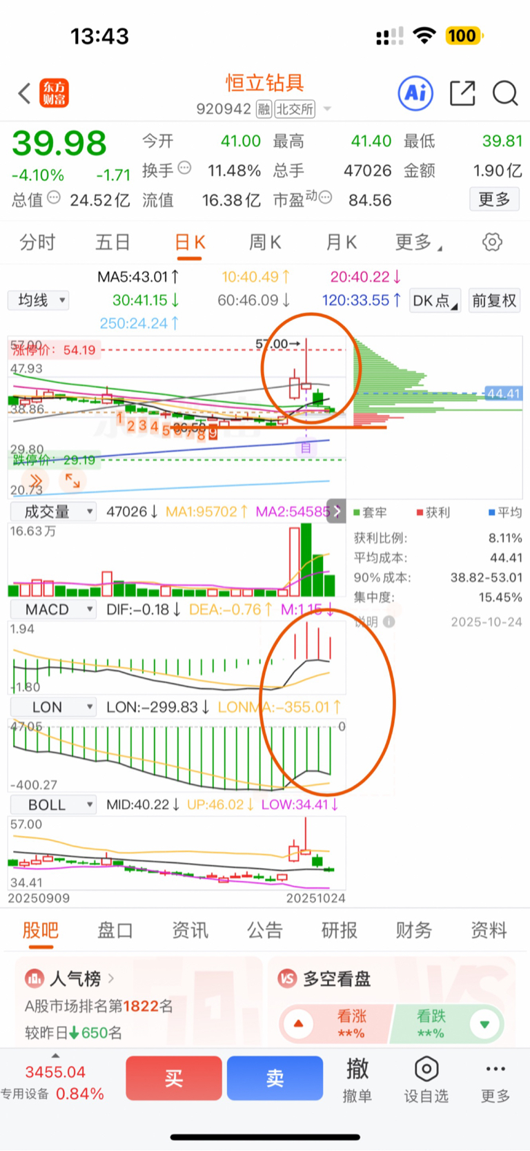 $恒立钻具(SZ920942)$ 缺口39.2不是低点,看下面36.58会不会破吧,应该大概率会破。这股短期别想上45以上了,会阴跌概率大,60分钟,还有日线会一路向下,就算反弹也是微乎其微!仅供参考
