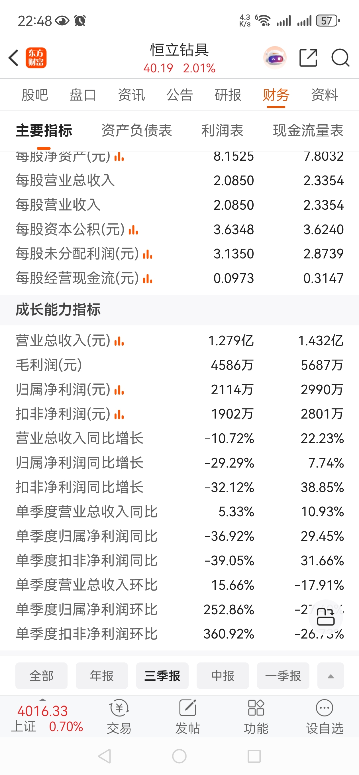 $恒立钻具(SZ920942)$ 第三季度净利润环比增长252.86%,扣非后环比增长360.92%,明天继续反弹了。