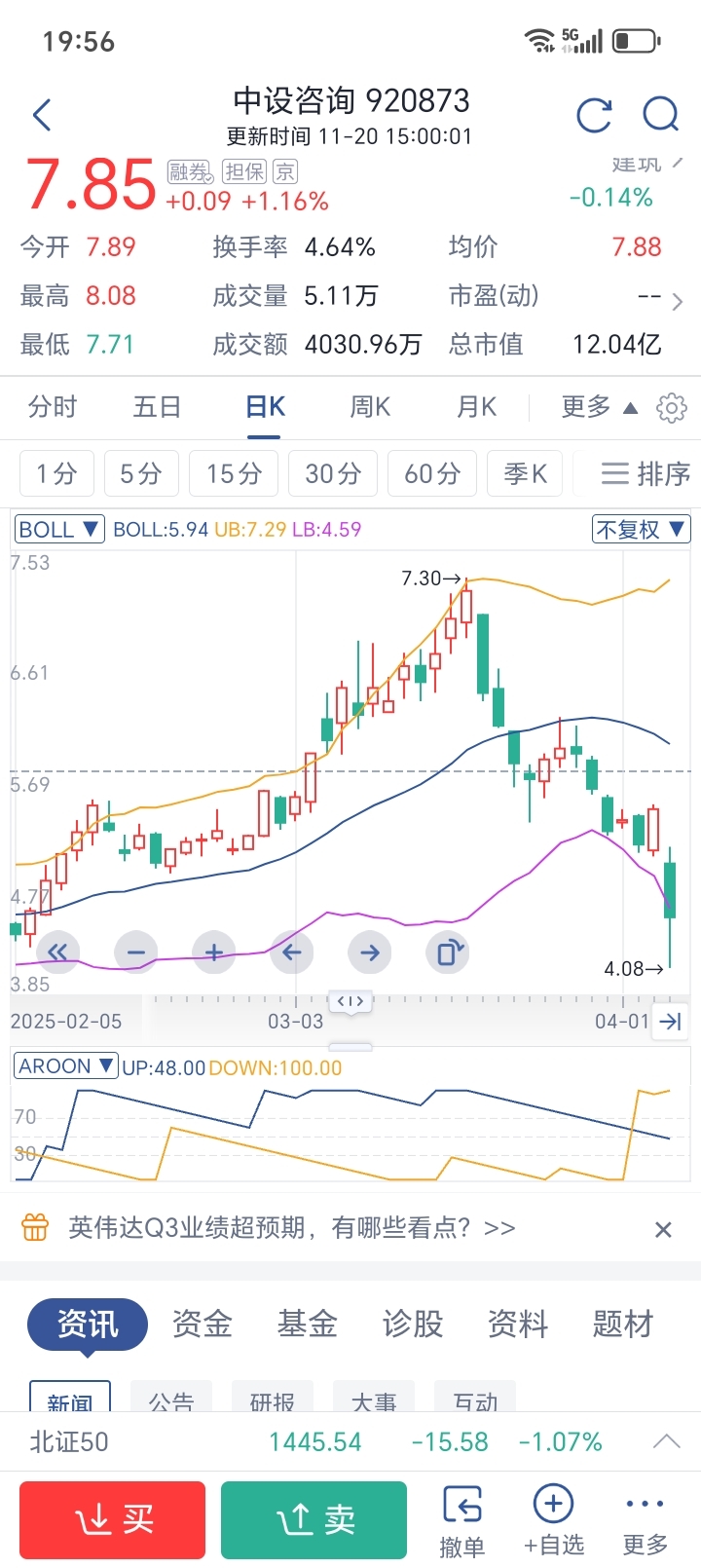 今天回来看看这个票。和我3月份。买的中设咨询走势简直太像了。如果走成这种走势。记