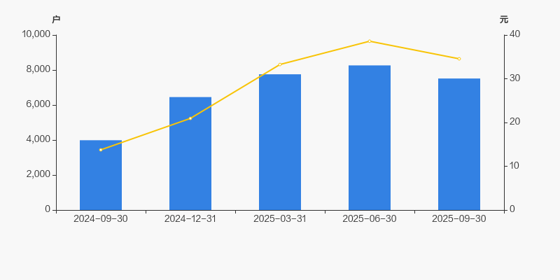 截至2025年9月30日,公司最新总股本为1.28亿股,其中流通股本为5988.58万股。户均持有流通股数量由上期的4553股上升至7970股,户均流通市值27.54万元。