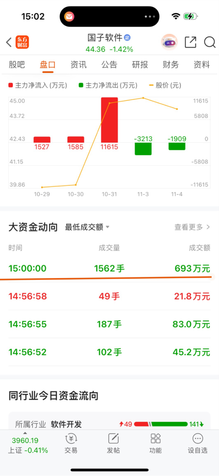 $国子软件(SZ920953)$ 有哪位股友知道,尾盘这种单,为什么超级复盘的时候看不到