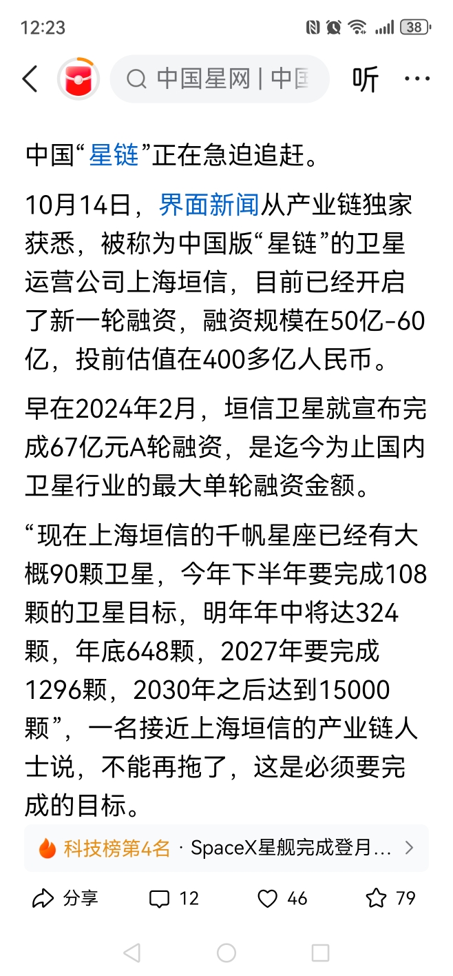 中国“星链”狂飙:上海垣信最新估值已超400亿,明年完成600多颗卫星发射目标。