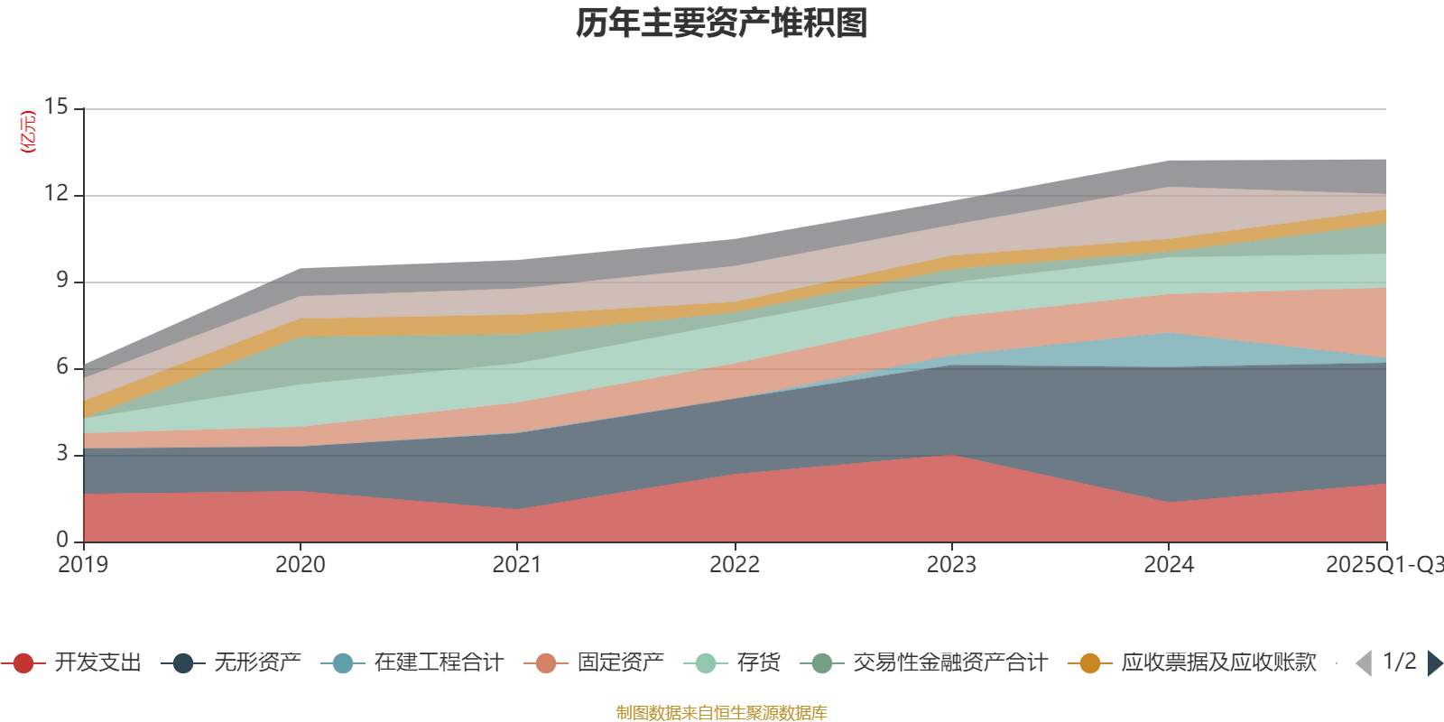 资产重大变化方面,截至2025年三季度末,公司货币资金较上年末减少69.63%,占公司总资产比重下降9.54个百分点;固定资产较上年末增加82.15%,占公司总资产比重上升8.23个百分点;在建工程合计较上年末减少84.94%,占公司总资产比重下降7.7个百分点;交易性金融资产合计较上年末增加422.19%,占公司总资产比重上升6.38个百分点。