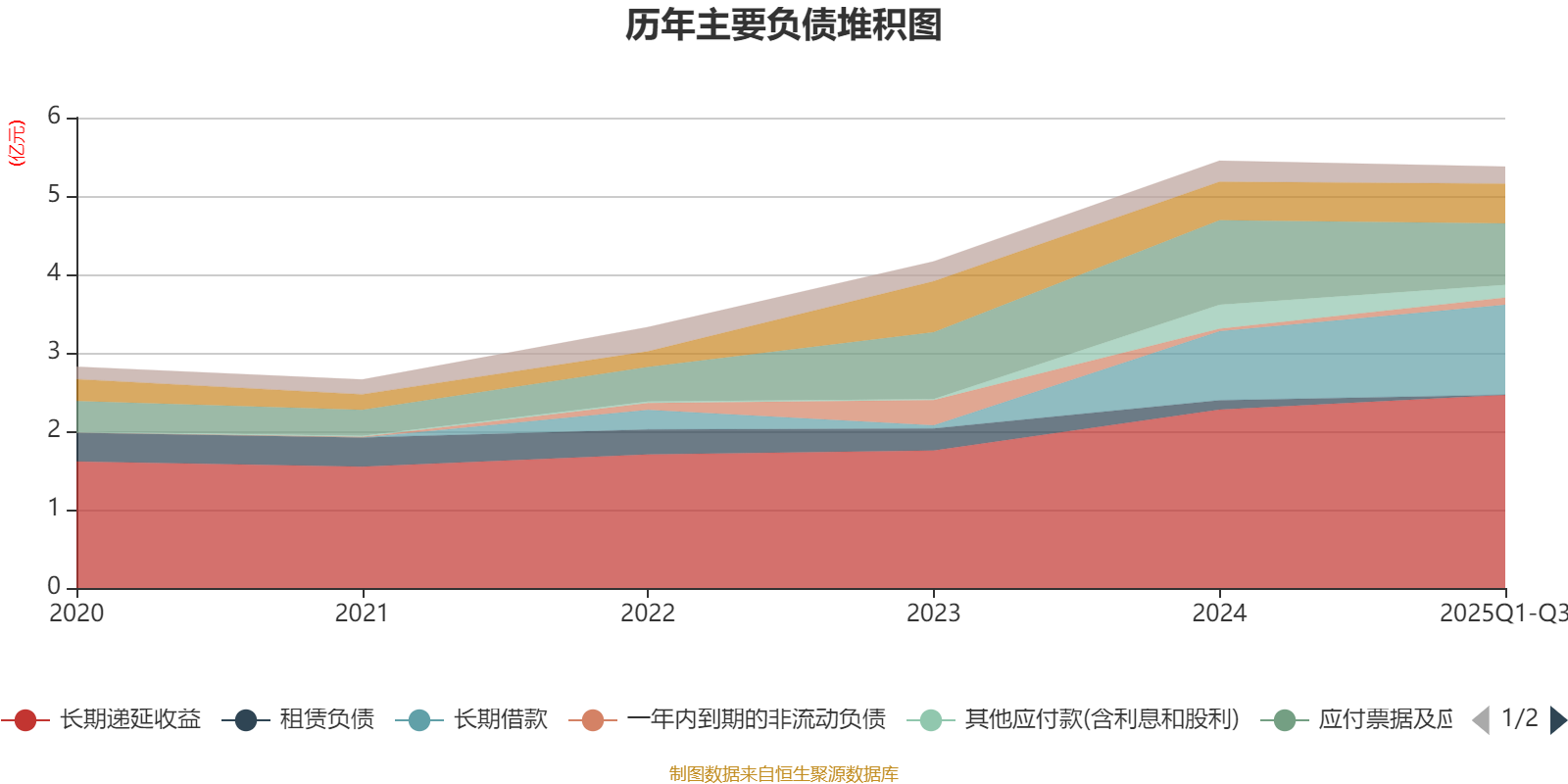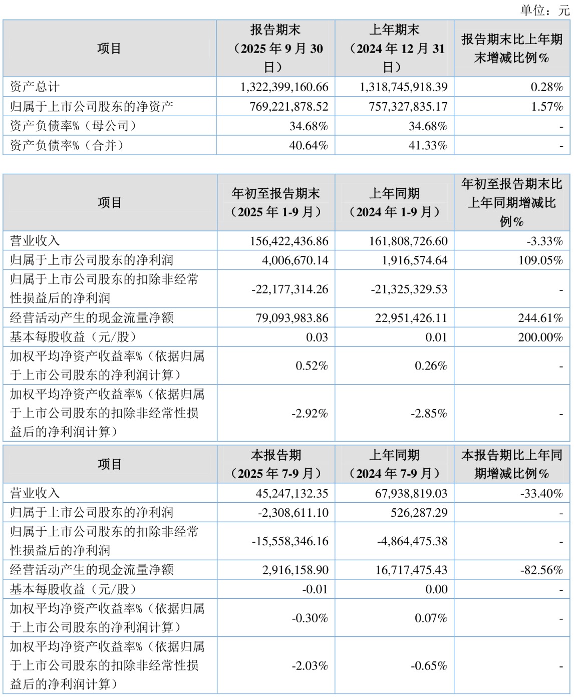 负债重大变化方面,截至2025年三季度末,公司应付票据及应付账款较上年末减少27.43%,占公司总资产比重下降2.26个百分点;长期借款较上年末增加30.42%,占公司总资产比重上升2.01个百分点;长期递延收益较上年末增加8.2%,占公司总资产比重上升1.36个百分点;其他应付款(含利息和股利)较上年末减少46.99%,占公司总资产比重下降1.09个百分点。