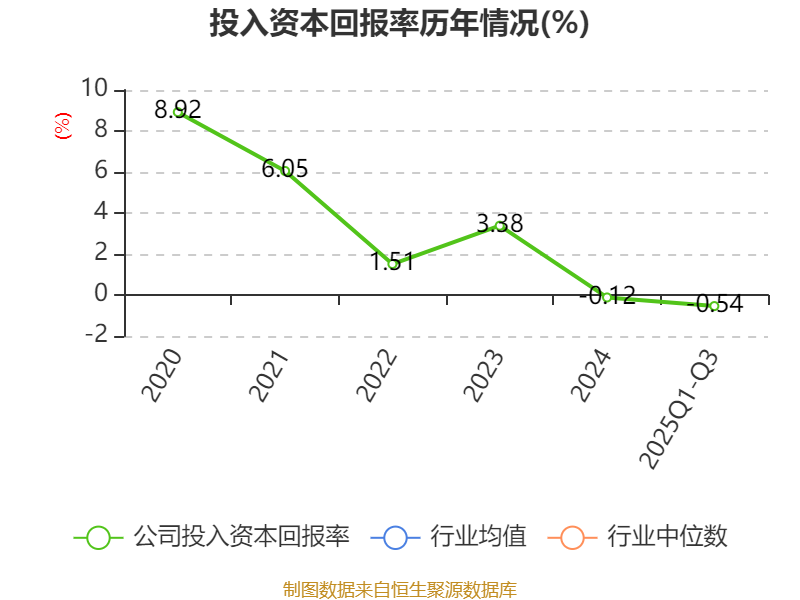 盈利能力方面, 2025年前三季度公司加权平均净资产收益率为0.52%,同比上升0.26个百分点。公司2025年前三季度投入资本回报率为-0.54%,较上年同期上升0.39个百分点。