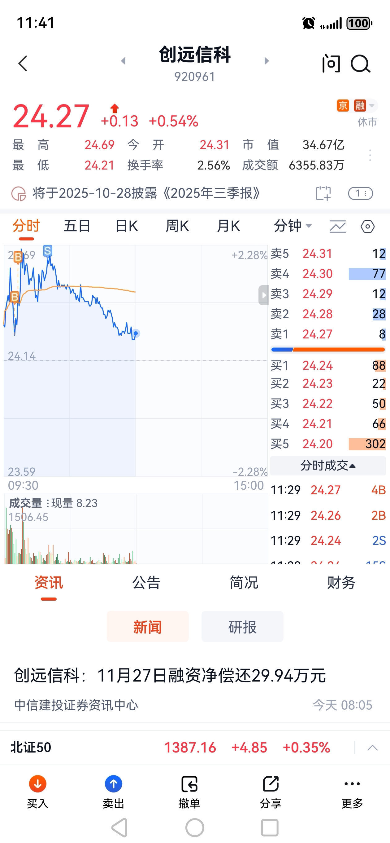 $创远信科(SZ920961)$ 这个股就趁做T啊,低吸高抛,下午再进去