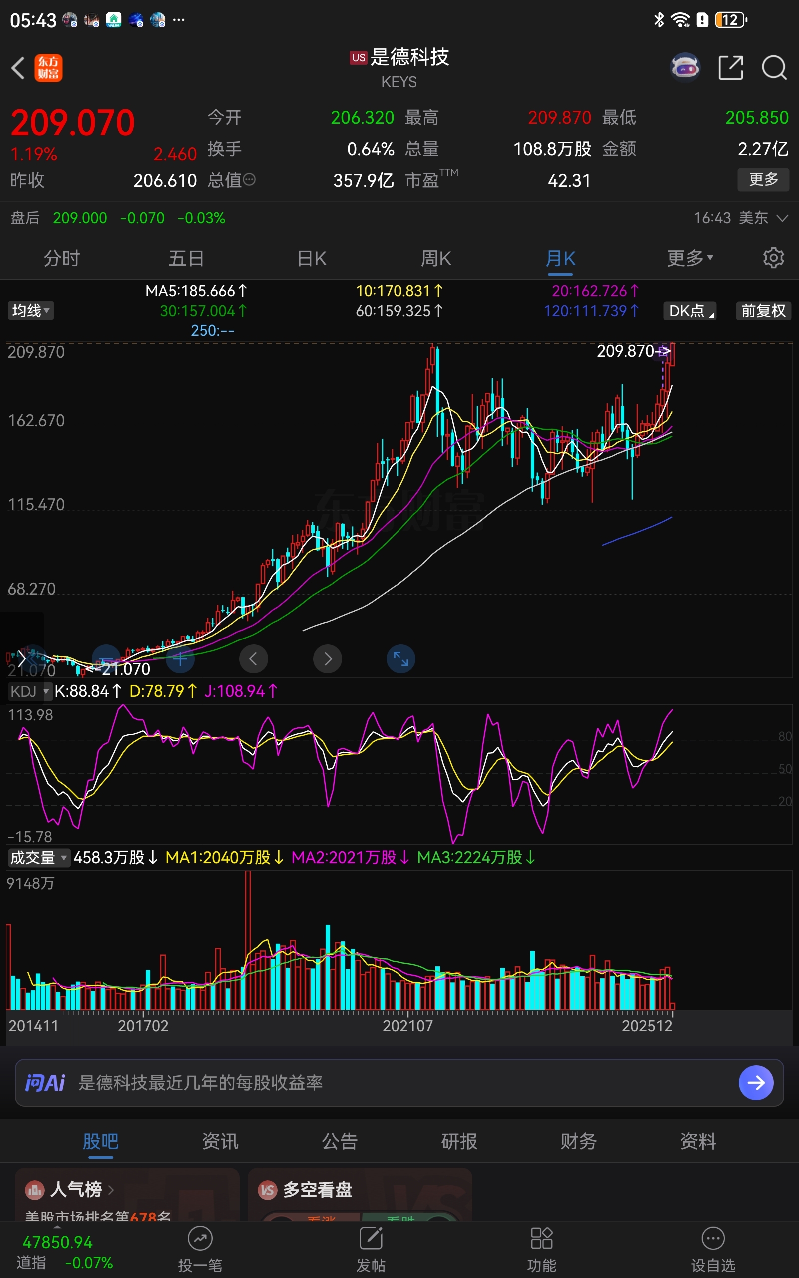 $创远信科(SZ920961)$ 创远对标的美股是德科技已经历史新高,你也要加油