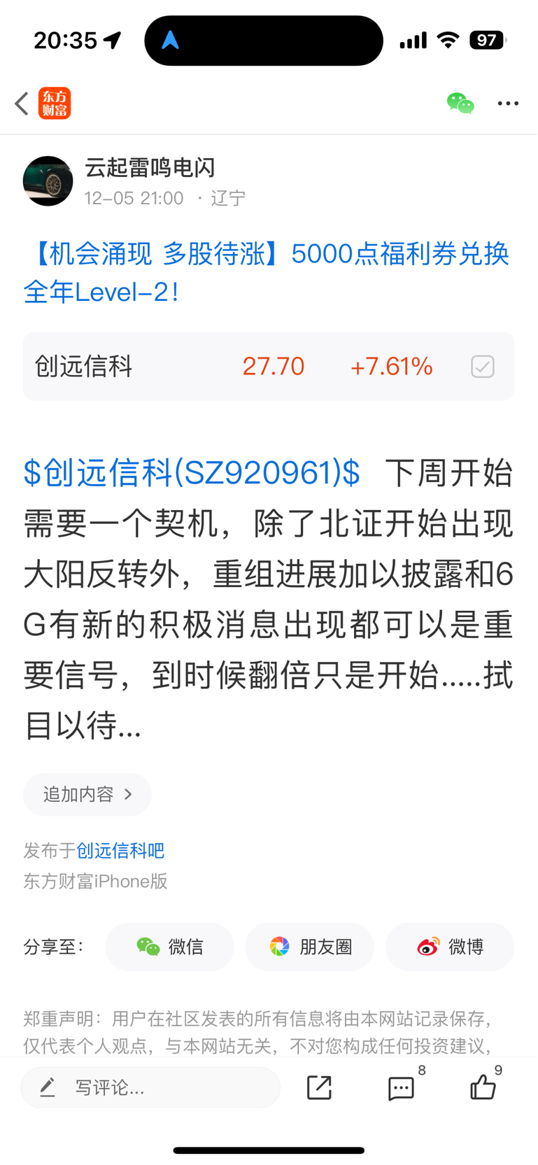 温馨提示: 1.根据《证券法》规定,禁止编造、传播虚假信息或者误导性信息,扰乱证券市场;2.用户在本社区发表的所有资料、言论等仅代表个人观点,与本网站立场无关,不对您构成任何投资建议。用户应基于自己的独立判断,自行决定证券投资并承担相应风险。《东方财富社区管理规定》