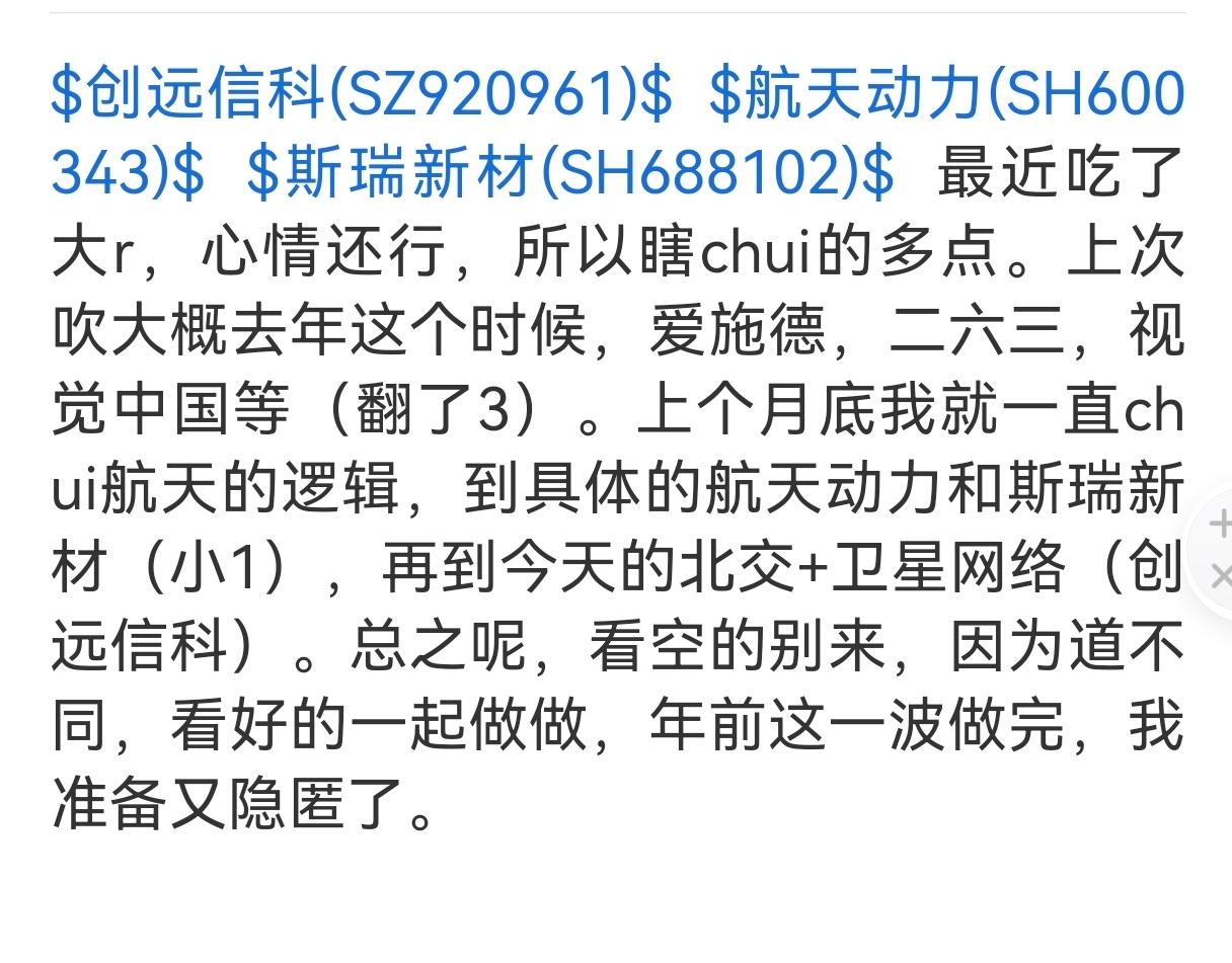 $创远信科(SZ920961)$$斯瑞新材(SH688102)$$航天动力(SH