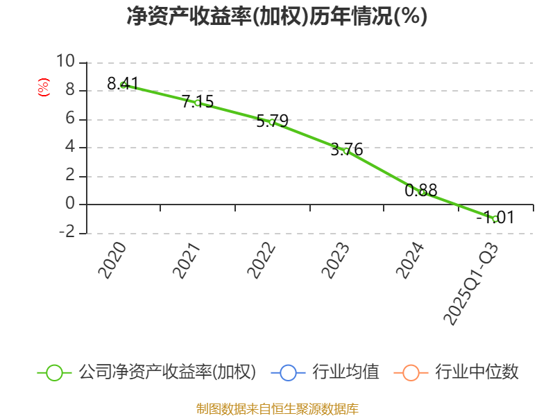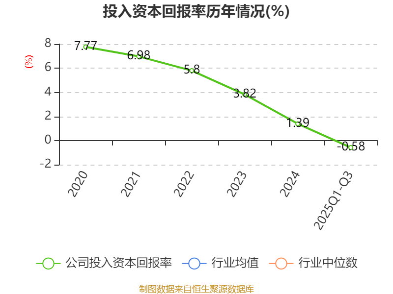 盈利能力方面, 2025年前三季度公司加权平均净资产收益率为-1.01%,同比下降3.31个百分点。公司2025年前三季度投入资本回报率为-0.58%,较上年同期下降3.06个百分点。