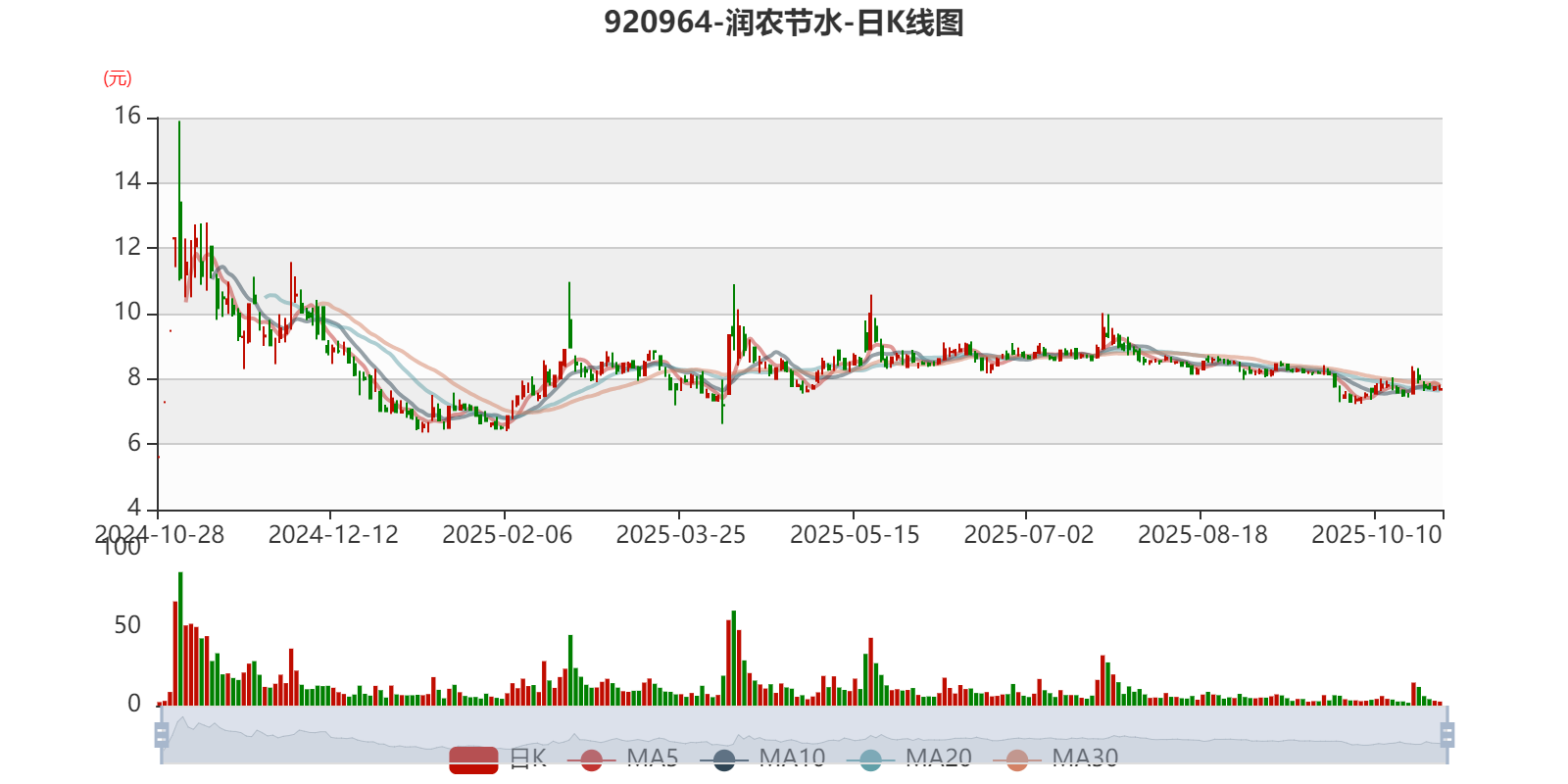 中证智能财讯润农节水(920964)10月28日披露2025年第三季度报告。前三季度公司实现营业总收入4.07亿元,同比下降12.97%;归母净利润亏损890.04万元,上年同期盈利2074.12万元;扣非净利润亏损973.49万元,上年同期盈利1763.63万元;经营活动产生的现金流量净额为-1.73亿元,上年同期为-1.25亿元;报告期内,润农节水基本每股收益为-0.03元,加权平均净资产收益率为-1.01%。