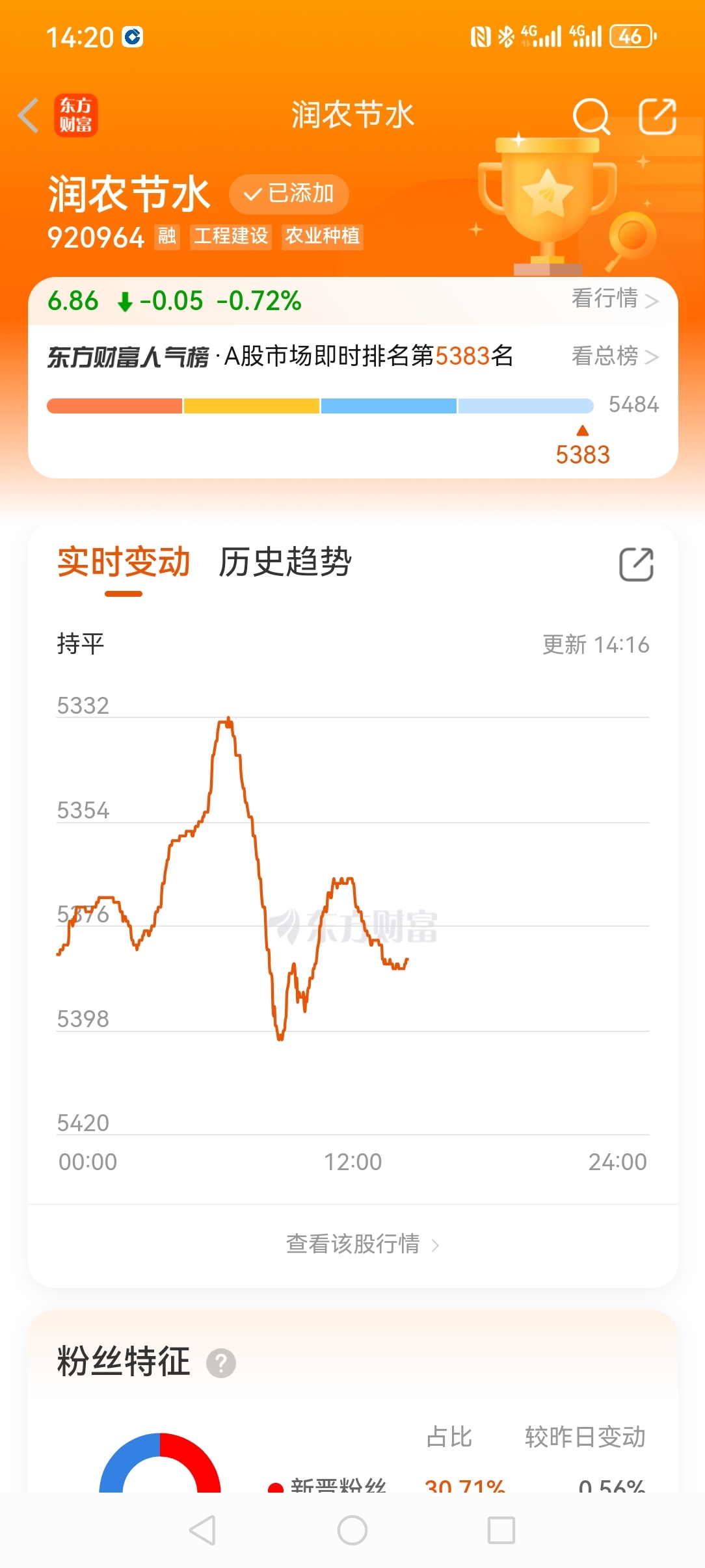 $润农节水(SZ920964)$ A股人气榜倒数第一。