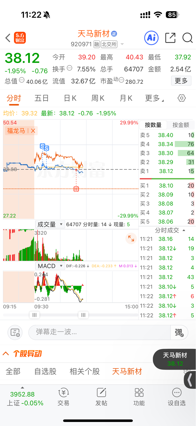 $天马新材(SZ920971)$ 分时都在模仿福龙马, 看来也是量化主控。