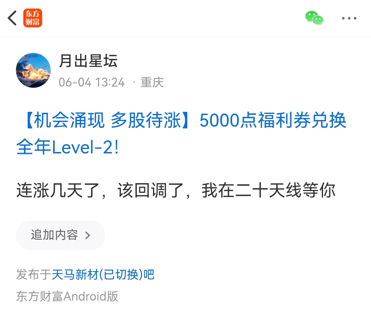 温馨提示: 1.根据《证券法》规定,禁止编造、传播虚假信息或者误导性信息,扰乱证券市场;2.用户在本社区发表的所有资料、言论等仅代表个人观点,与本网站立场无关,不对您构成任何投资建议。用户应基于自己的独立判断,自行决定证券投资并承担相应风险。《东方财富社区管理规定》