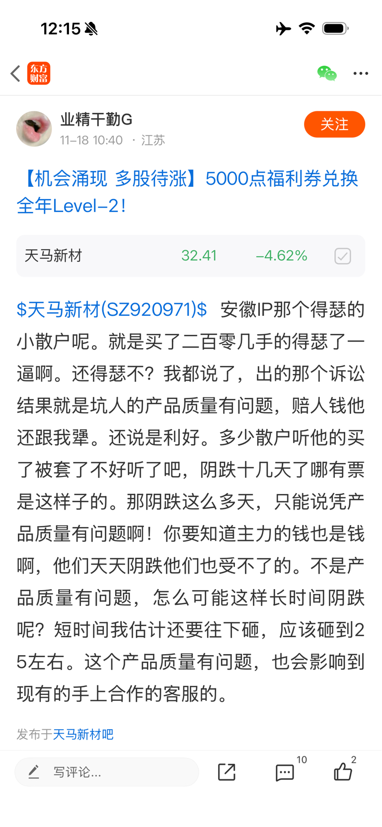 $天马新材(SZ920971)$ 此人刚从宛平南路600号放出!最近一直在跌是靠消息导致?散户听我的买了这个?我没你说的那么大的能力 !我只不过是个小散 就像你到处说小散小散那个的小散!我已经周四跑了!你别想着跌丝我了,连累吧里的朋友!还有我想看看吧里的朋友 有多少想此人棍出吧里的 点个赞!!