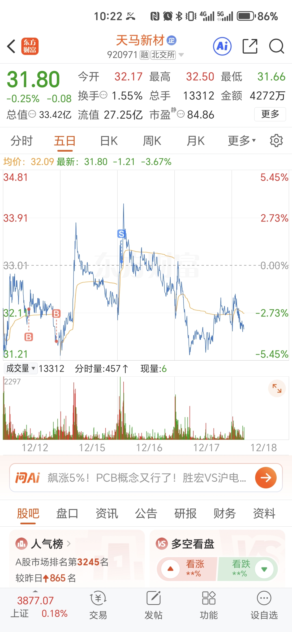 $天马新材(SZ920971)$ 这几天的走势一模一样