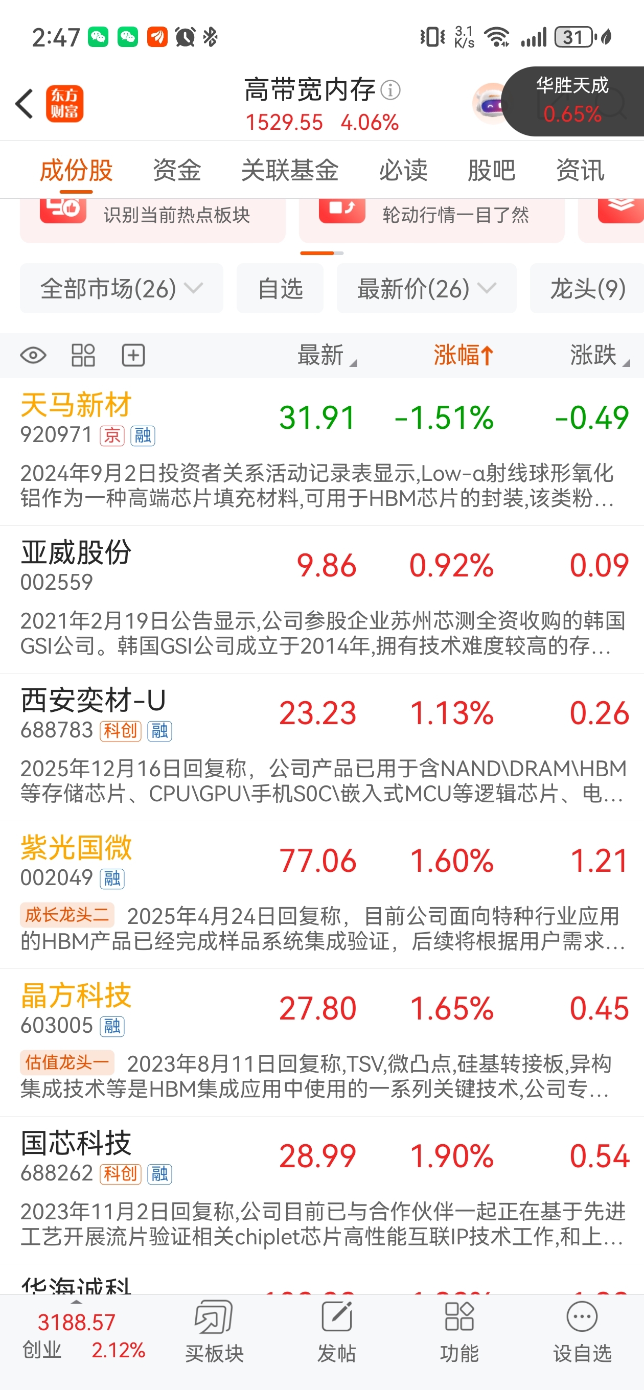 $天马新材(SZ920971)$ 这个和高带宽内存没关系,,,其他全红这个绿