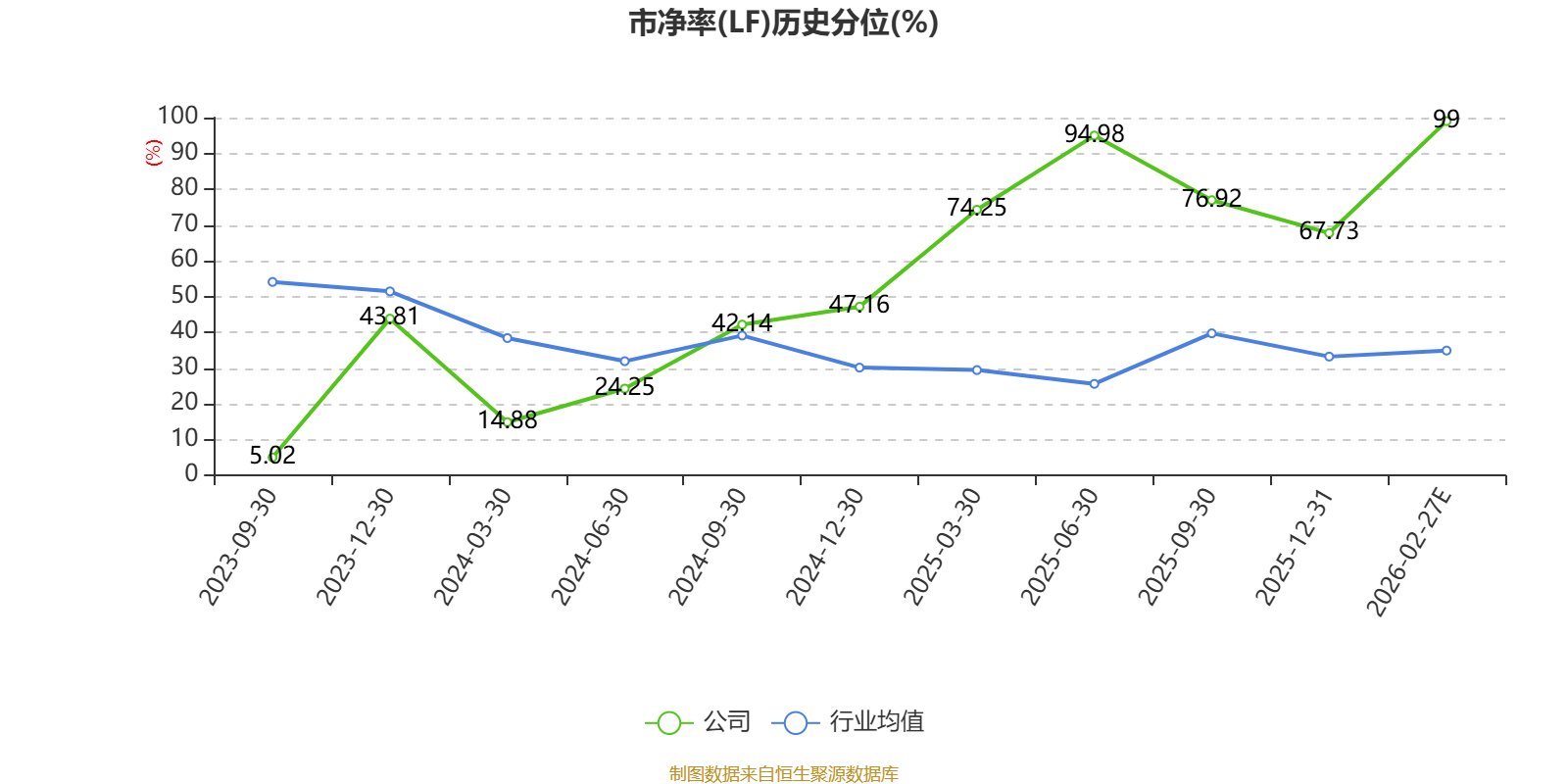 市盈率、市净率为负时,不显示当期分位数,会导致折线图中断。