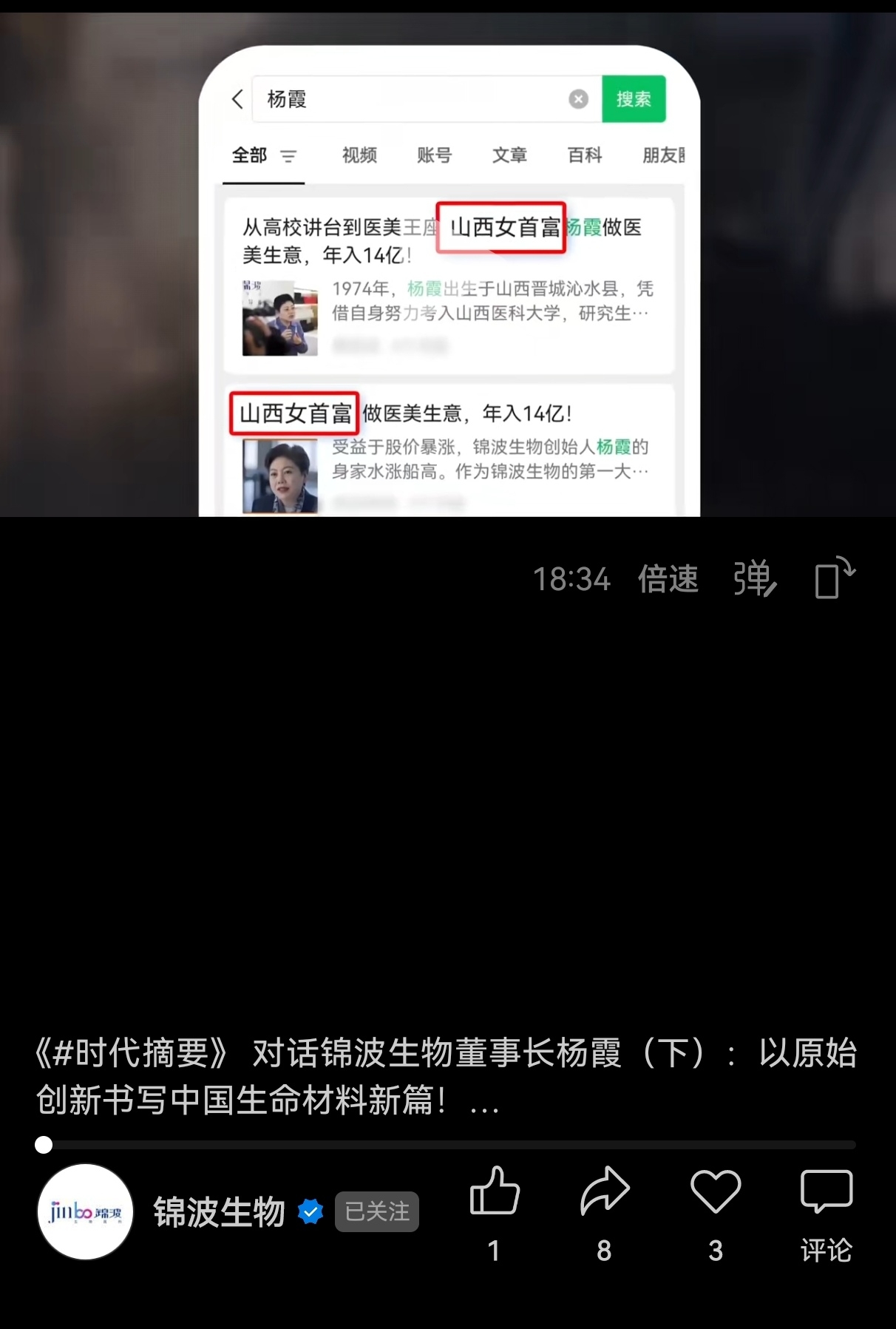 锦波天天在宣传杨霞是“首富”、“早都不想做了”,听到我都腻了。理念方向感觉有点不妥,创始人价值观导向有点偏,期待能转变,到时买她家的股票$锦波生物(SZ920982)$ $爱美客(SZ300896)$