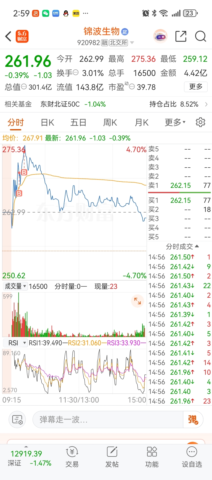 $锦波生物(SZ920982)$ 半个月浮盈,一天追高就亏掉