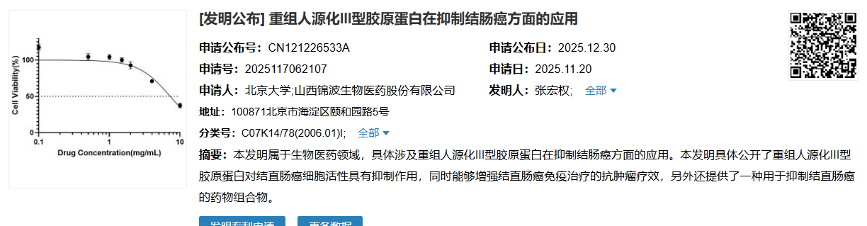 [发明公布] 重组人源化III型胶原蛋白 在抑制 结 肠 癌方面的应用