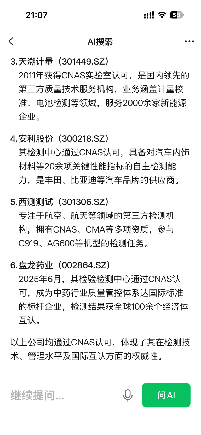 目前全大 A 获CNAS国家实验室认可的上市企业不过 6 家