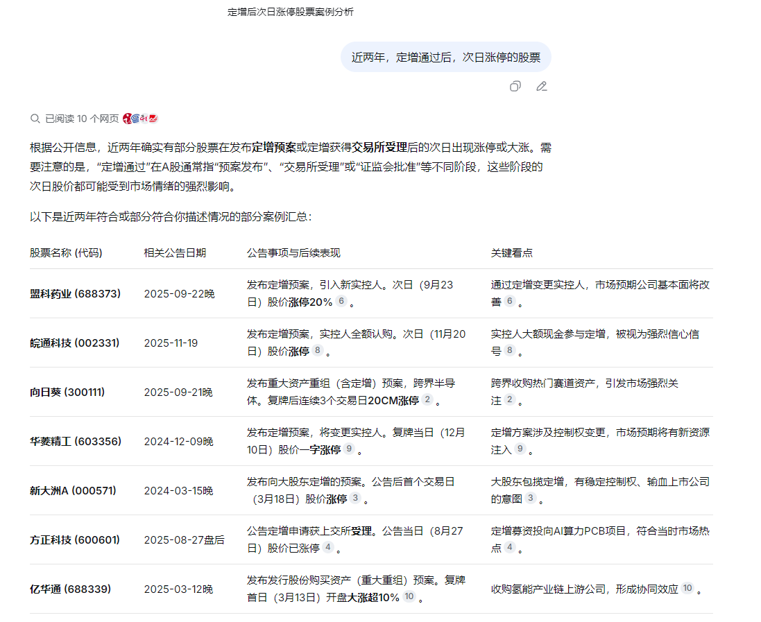 2024-2025年,上市定增通过后,次日涨停的股票一览表