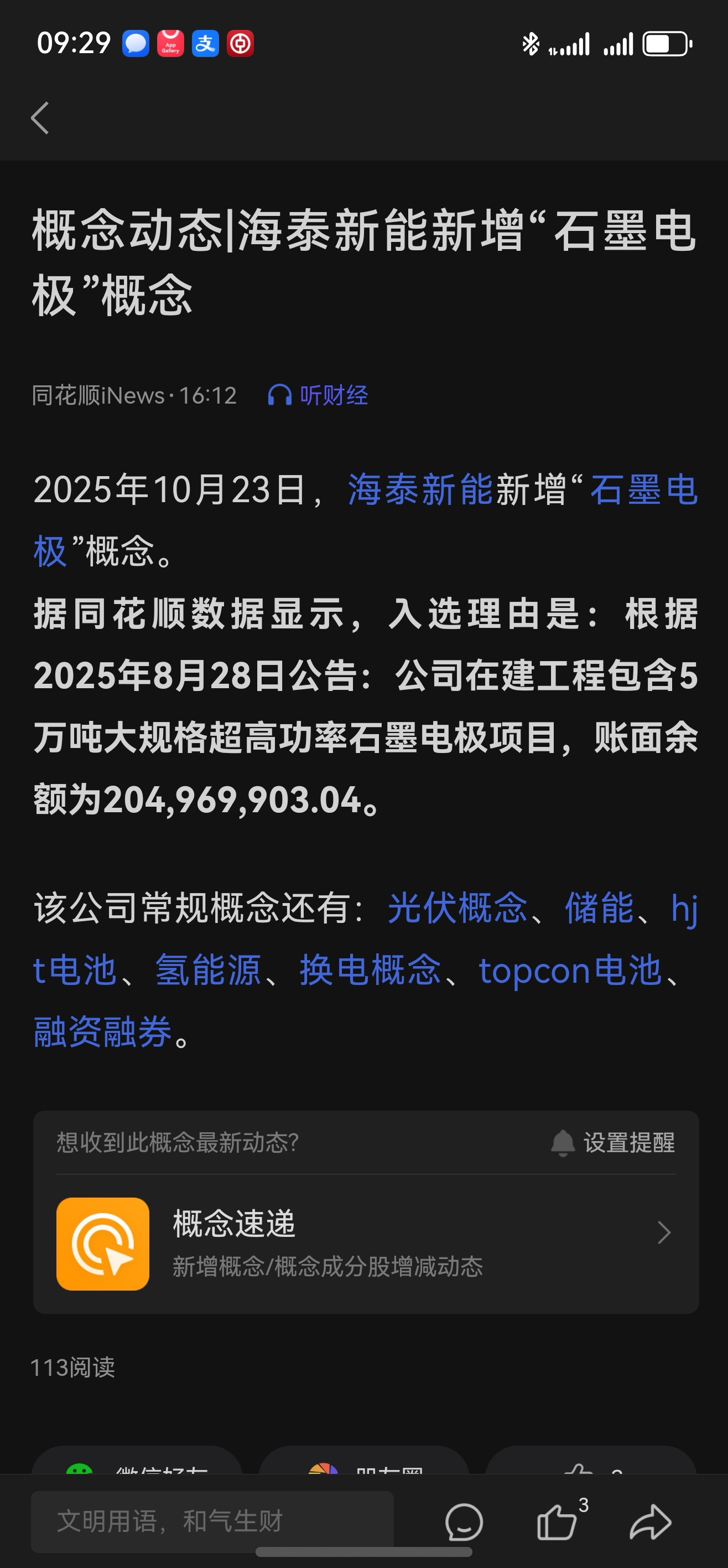 $海泰新能(SZ920985)$ 海泰哪有这个概念啊,同花顺脑子坏了吧