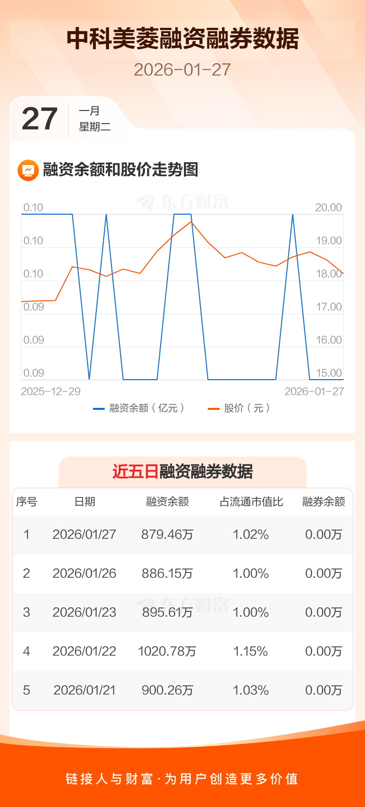 交易所最新数据显示,中科美菱于2026年1月27日获融资买入163.01万元,融资偿还169.70万元,当日融资净偿还6.69万元。目前,该股融资余额879.46万,占流通市值比例为1.02%。