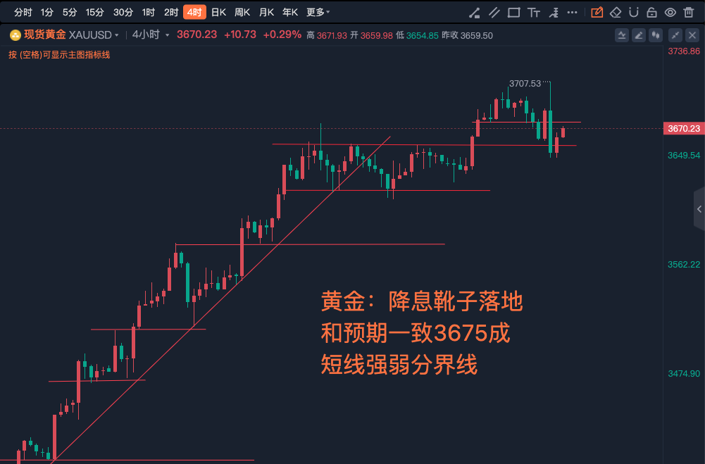 9.18黄金:降息靴子落地和预期一致3675成短线强弱分界线,沪金:827之上关注837能发再次企稳