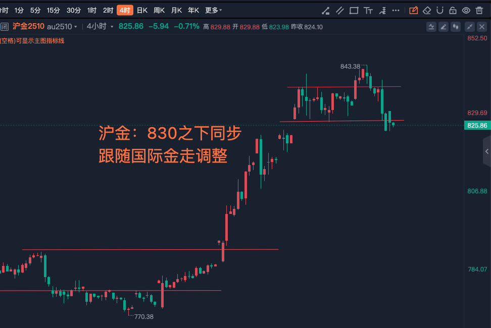 黄金:3675之下继续按照调整修正对待,沪金:830之下同步跟随国际金走调整