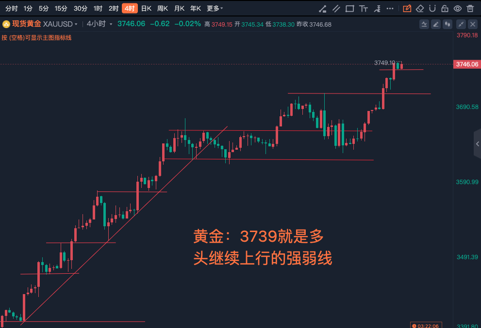 9.23黄金:3739就是多头继续上行的强弱线,沪金:强势多头请勿猜顶守住845