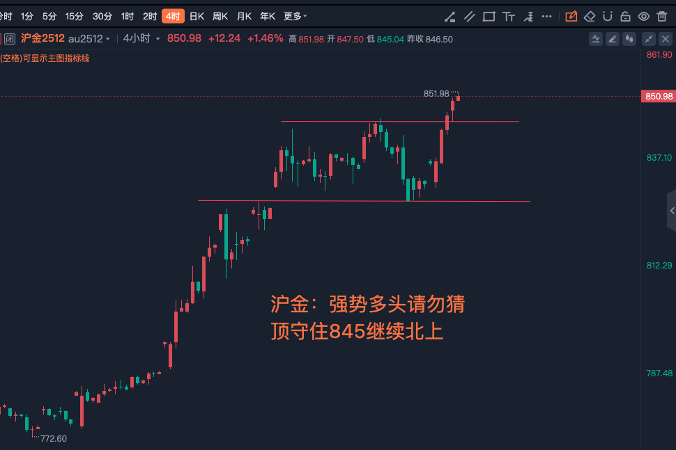 9.23黄金:3739就是多头继续上行的强弱线,沪金:强势多头请勿猜顶守住845继续北上