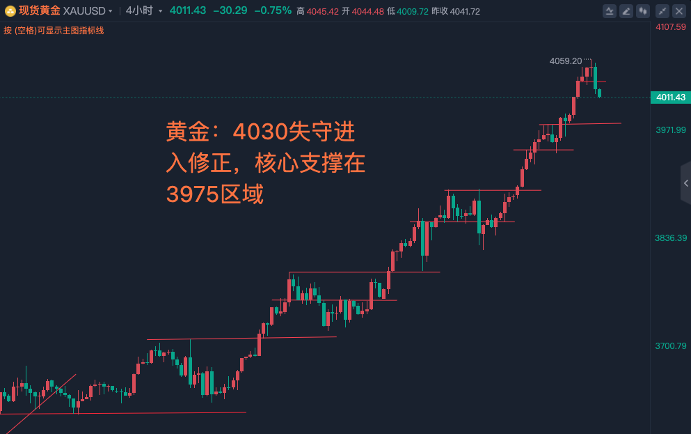 10-9黄金:4030失守进入修正,核心支撑在3975区域