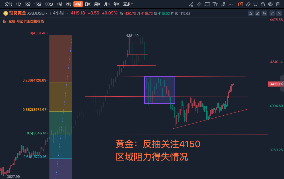 黄金:反抽关注4150区域阻力得失情况,沪金:930企稳后关注953区域阻力得失