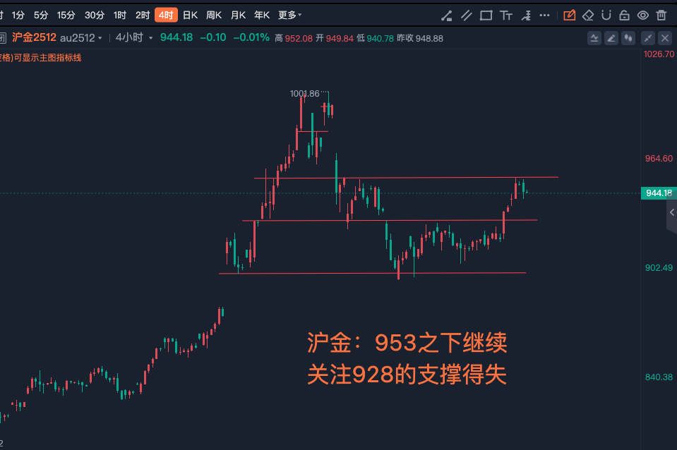 黄金:4160企稳前不能过度乐观,企稳后再考虑改变思路,沪金:953之下继续关注928的支撑得失