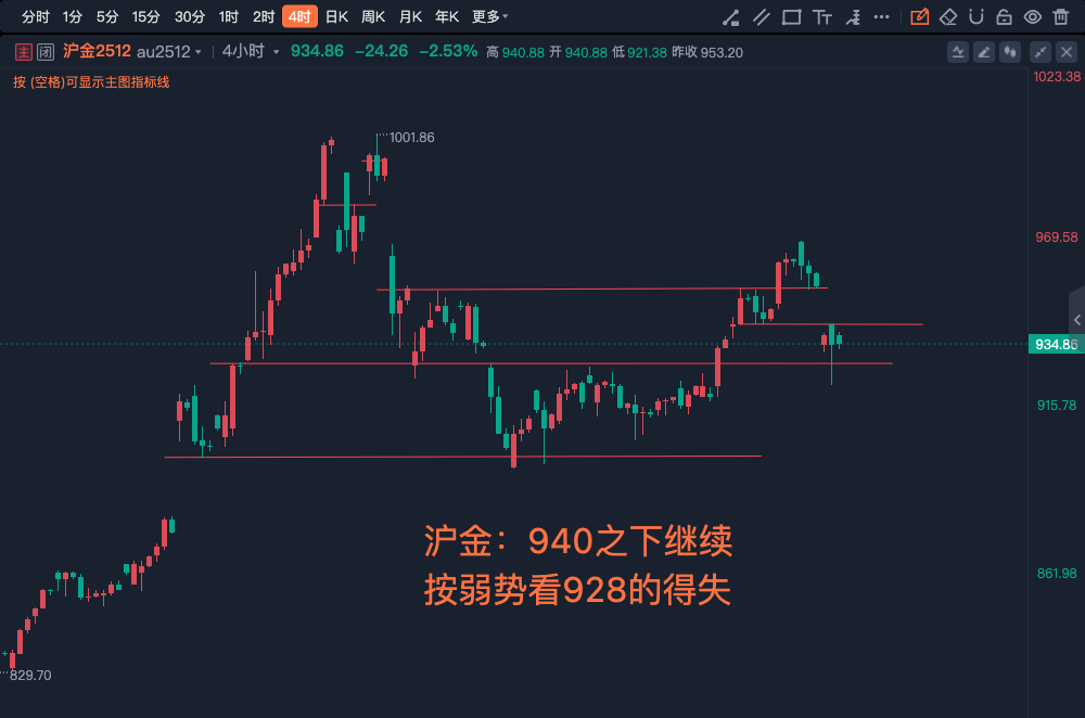黄金:4150之下的调整看4115-4030的区间震荡,沪金:940之下继续按弱