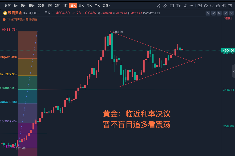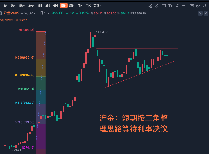 黄金:临近利率决议暂不盲目追多看震荡,沪金:短期按三角整理思路等待利率决议