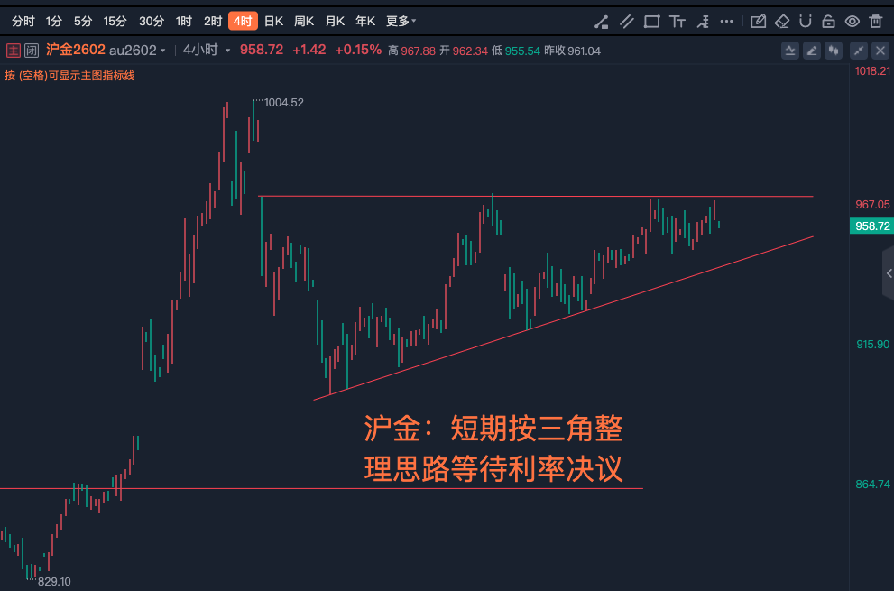 黄金:下周美联储利率决议核心焦点4110,沪金:短期按三角整理思路等待利率决议