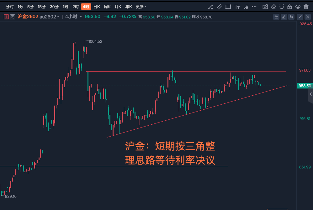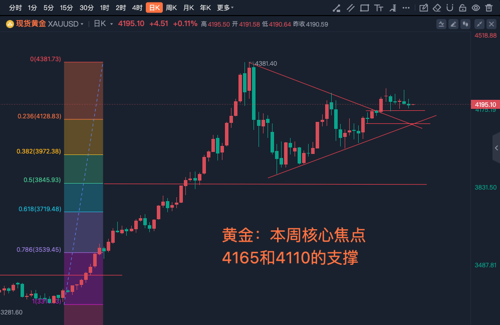 黄金:本周核心焦点4165和4110的支撑,沪金:短期按三角整理思路等待利率决议