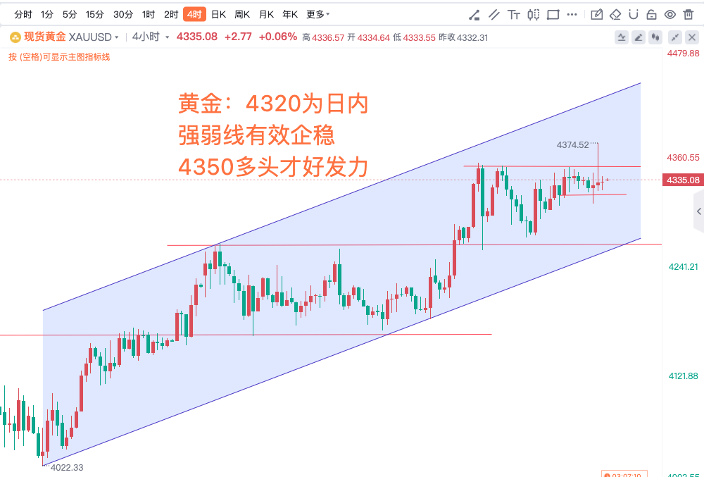 黄金:4320为日内强弱线有效企稳4350多头才好发力,沪金:969上守住977继续多头对待