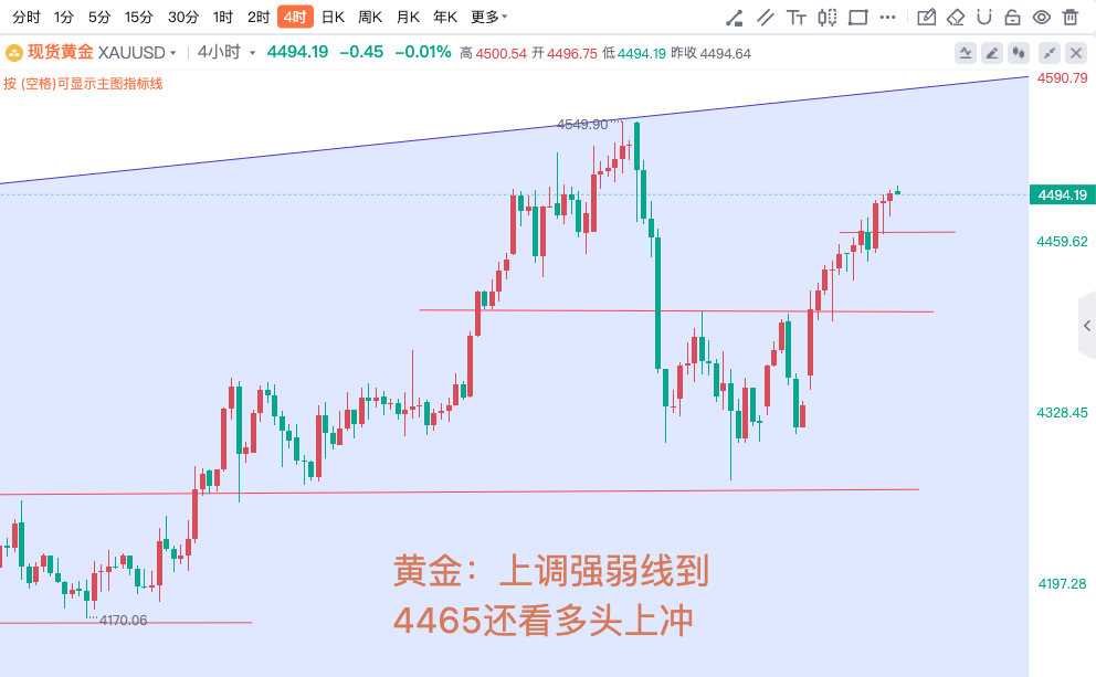 黄金:上调强弱线到4465还看多头上冲,沪金:守住1000关口保持强势格局看前高