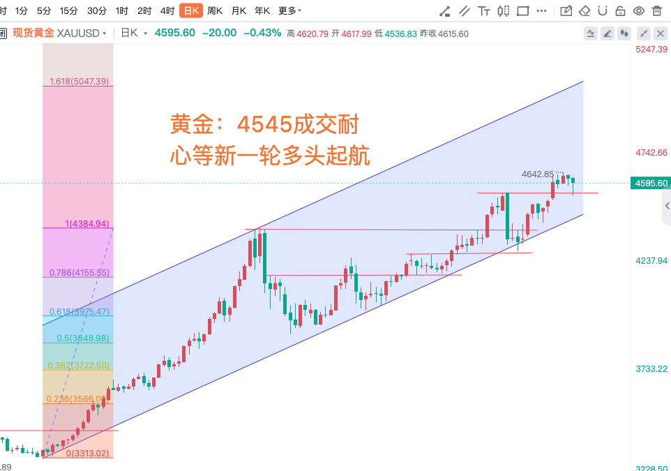 黄金:4545成交耐心等新一轮多头起航,沪金:1023虚破仍需保持多头北上思路