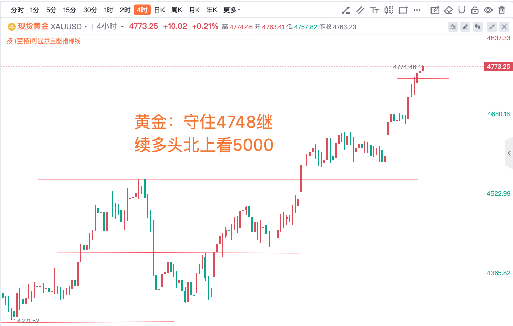 黄金:守住4748继续多头北上看5000,沪金:多头拿稳扶好,新进场建议用期权