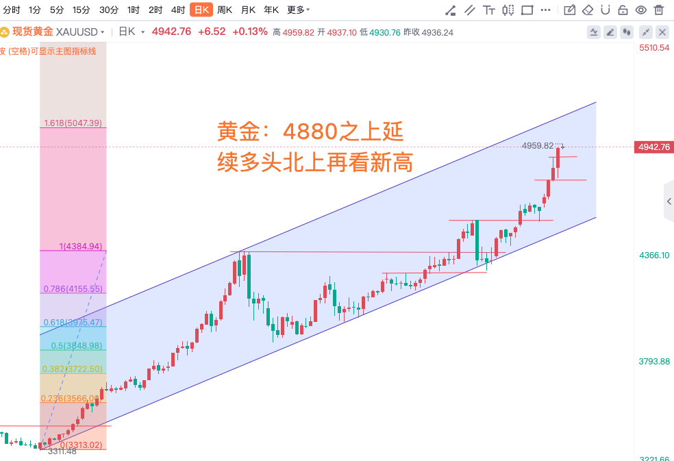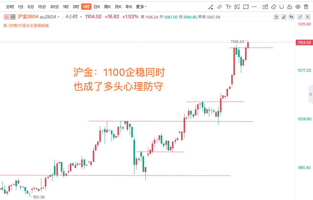 黄金:4880之上延续多头北上再看新高,沪金:1100企稳同时也成了多头心理防守