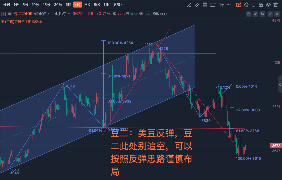 豆二:美豆反弹,豆二此处别追空,可以按照反弹思路谨慎布局